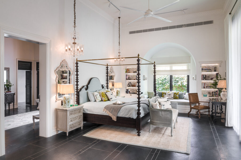 Stately Four-Posters - The bedrooms are anchored by dark-wood four-poster beds - a nod to colonial heritage - set against vaulted ceilings and intricate wall moldings.
